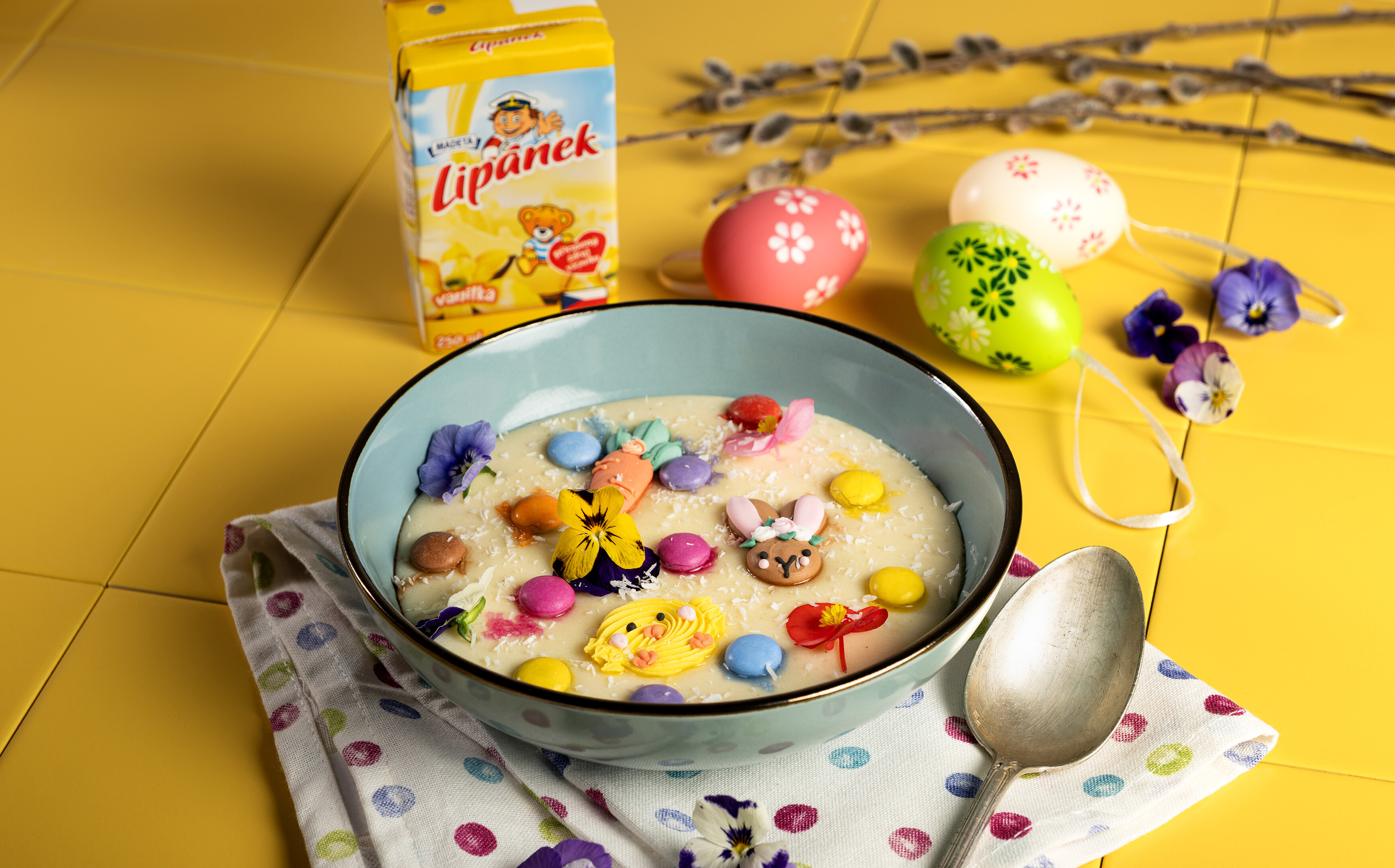 Sladké mliečko Lipánek nalej do hrnca, prisyp krupicu, cukor, štipku soli a priveď pomaly do varu. Počas varenia kašu miešaj, kým nezhustne. Hotovú kašu nalej na tanier. Ozdob podľa chuti, pridať môžeš ovocie, sladkosti alebo jedlé kvety. Po ozdobení posyp strúhaným kokosom a hurá maškrtiť.