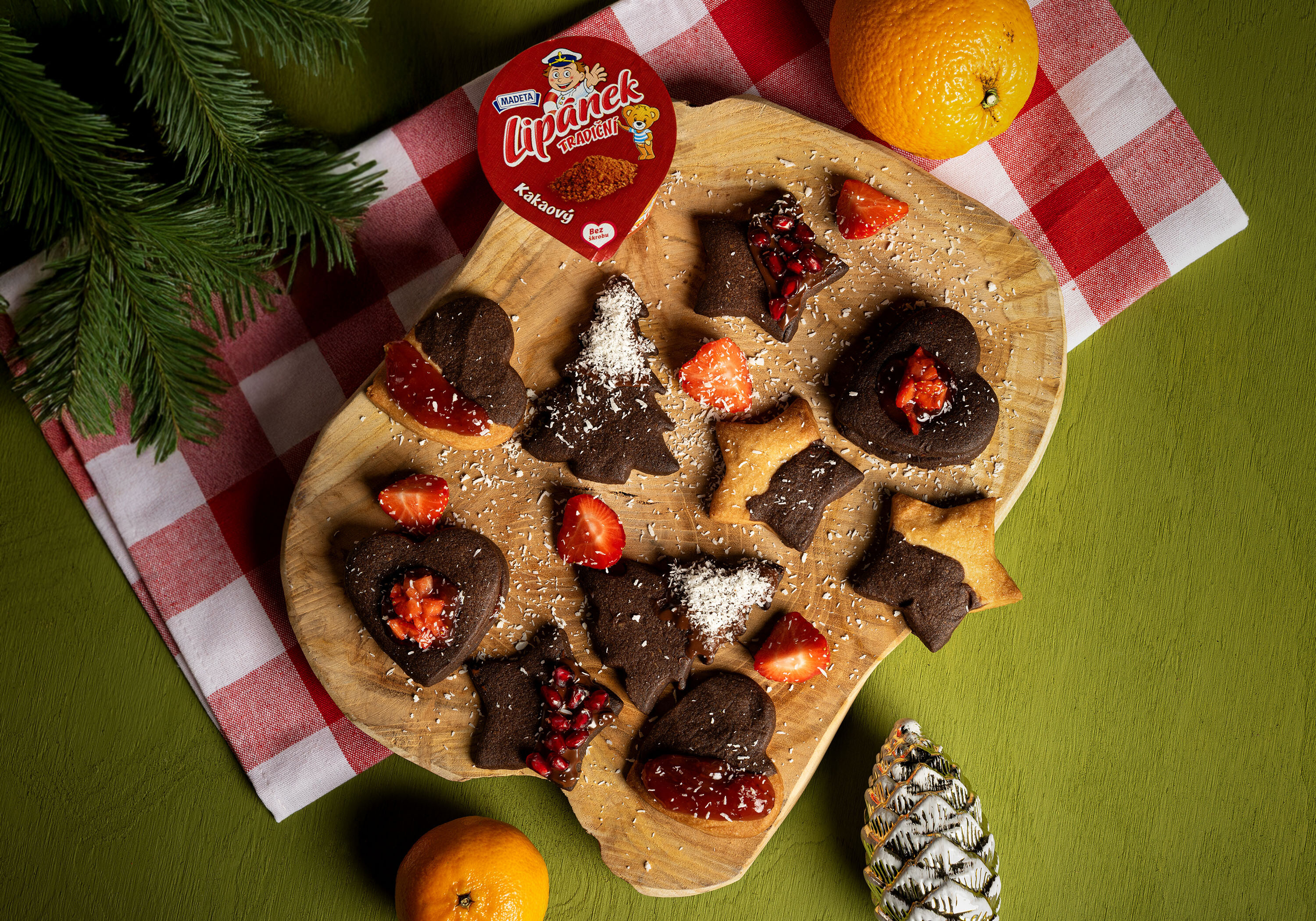 Cesto prepracujeme rukami na pomúčenej doske, rozdelíme na dve časti, do jednej pridáme kakao, obe zabalíme do fólie a necháme aspoň hodinu v chladničke. Rúru vyhrejeme na 200 °C. Cesto vyvaľkáme na hrúbku cca 4 mm a vykrajujeme tvary, môžeme kombinovať biele a kakaové cesto. Prenesieme na plech s papierom na pečenie. Pečieme 12 minút do ľahkého zružovenia. Upečené koláčiky necháme vychladnúť a zlepíme marmeládou. Necháme rozležať 1–3 týždne na chladnom a suchom mieste. Pred podávaním môžeme dozdobiť marmeládou a posypať kokosom.