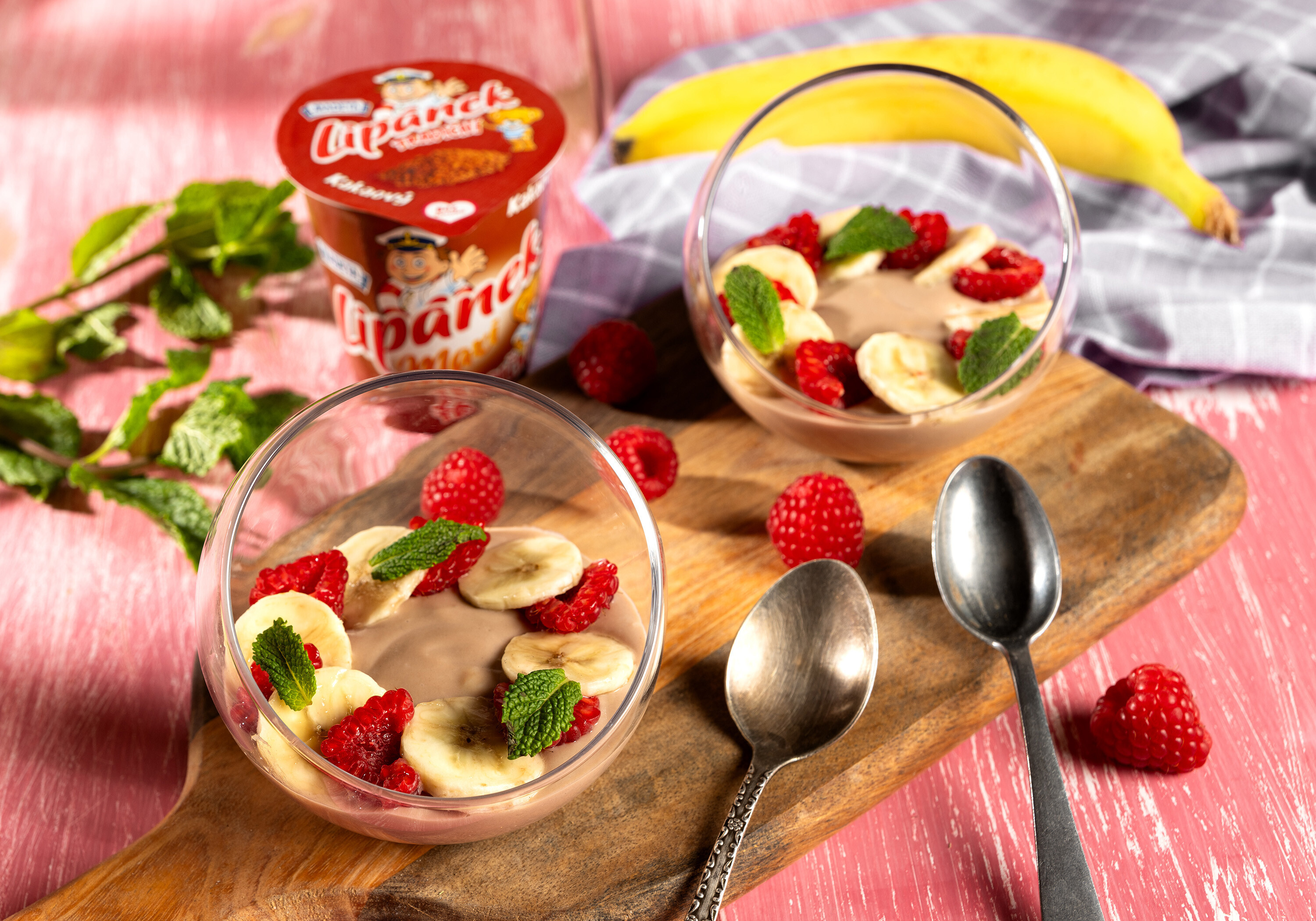 - banán alebo jahody na ozdobu