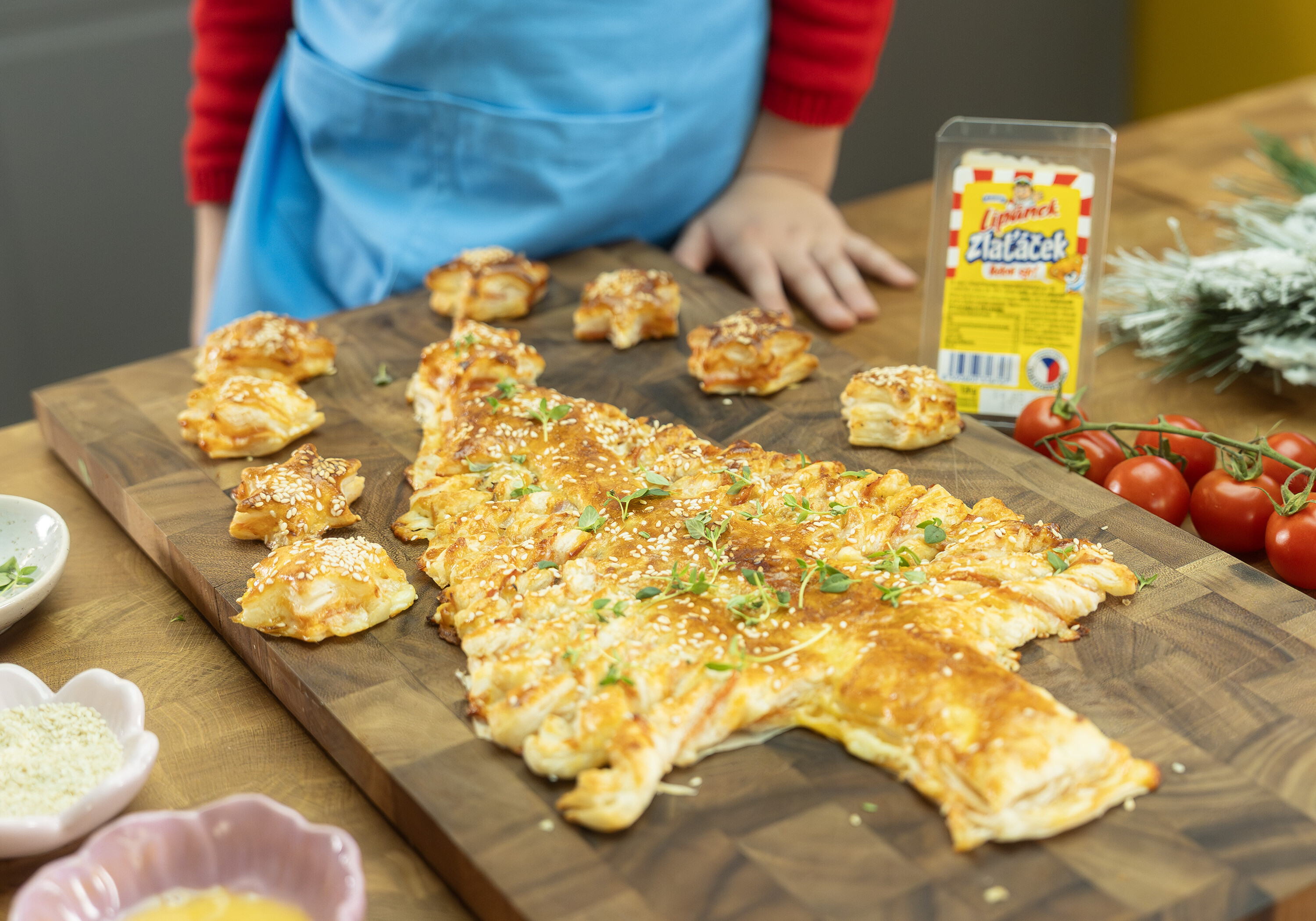 Vianočný stromček z lístkového cesta so syrom Lipánek Zlaťáček